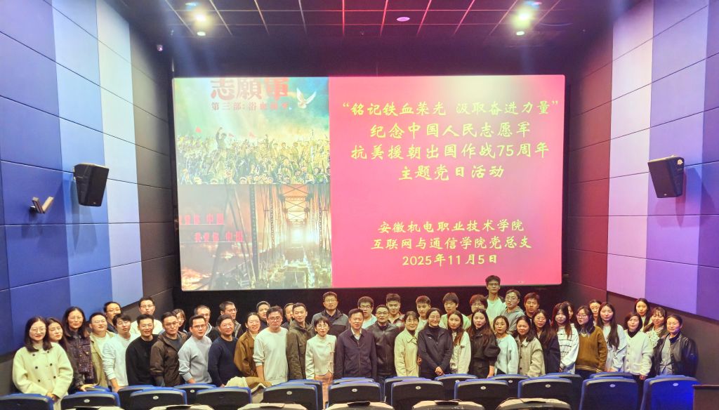 为深入学习贯彻习近平新时代中国特色社会主义思想,纪念中国人民志愿军抗美援朝出国作战75周年,11月5日下午,互联网与通信学院党总支组织50余名师生党员赴影院开展“铭记铁血荣光,汲取奋进力量”红色观影主题党日活动,集体观看爱国主义影片《志愿军:浴血和平》,通过沉浸式影像体验重温抗美援朝伟大历史,传承红色基因,凝聚奋进力量。学校党委委员、副院长张强以普通党员身份参加活动。