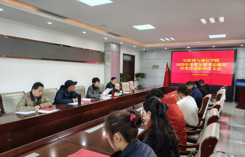为深入落实新时代党的建设总要求,压实基层党建责任,3月25日下午,互联网与通信学院党总支在明德楼306会议室召开2025年度党支部书记抓基层党建工作述职评议会。党总支书记王蓉主持会议,党政领导班子成员、各党支部书记及教师代表参加了此次会议。