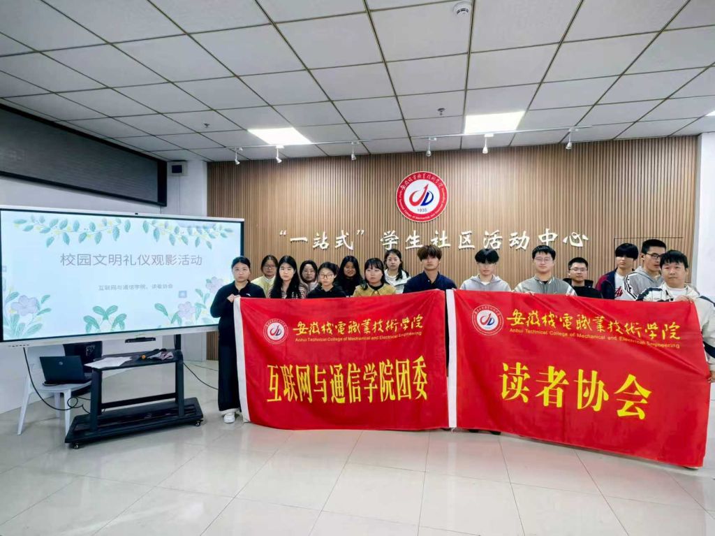 为落实学院“立德树人·同心护安”行动,织牢“全员育心”守护网,积极响应学校大学生文明礼仪提升月活动要求,进一步规范大学生日常行为,提升学生思想道德素养与文明素养。3月30日中午,互联网与通信学院联合读者协会在一站式学生社区举办校园文明礼仪主题观影活动。学院分团委副书记兼读者协会指导老师丁雨晨与30余名学生代表共同观看电影《放牛班的春天》,并围绕校园文明礼仪展开座谈交流。