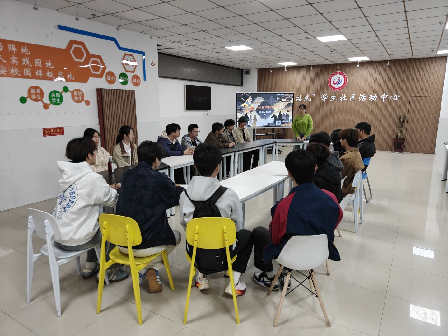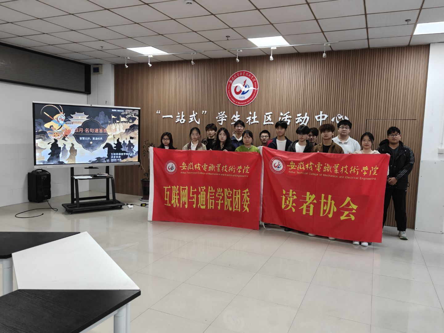 为落实学院“立德树人·同心护安”行动,织牢“全员育心”守护网,营造“爱读书、读好书、善读书”的浓厚氛围,引导青年学子亲近经典、感悟文字力量、涵养文明品格。4月8日中午,由互联网与通信学院团委与读者协会联合主办的“名句争锋 书香夺隘”文学知识趣味竞答活动在一站式学生社区圆满举行。本次活动以经典名著为核心,将文学知识普及、中华传统美德传承与趣味抢答有机融合,学院分团委副书记兼读者协会指导老师丁雨晨与40余名学生代表共同参与。